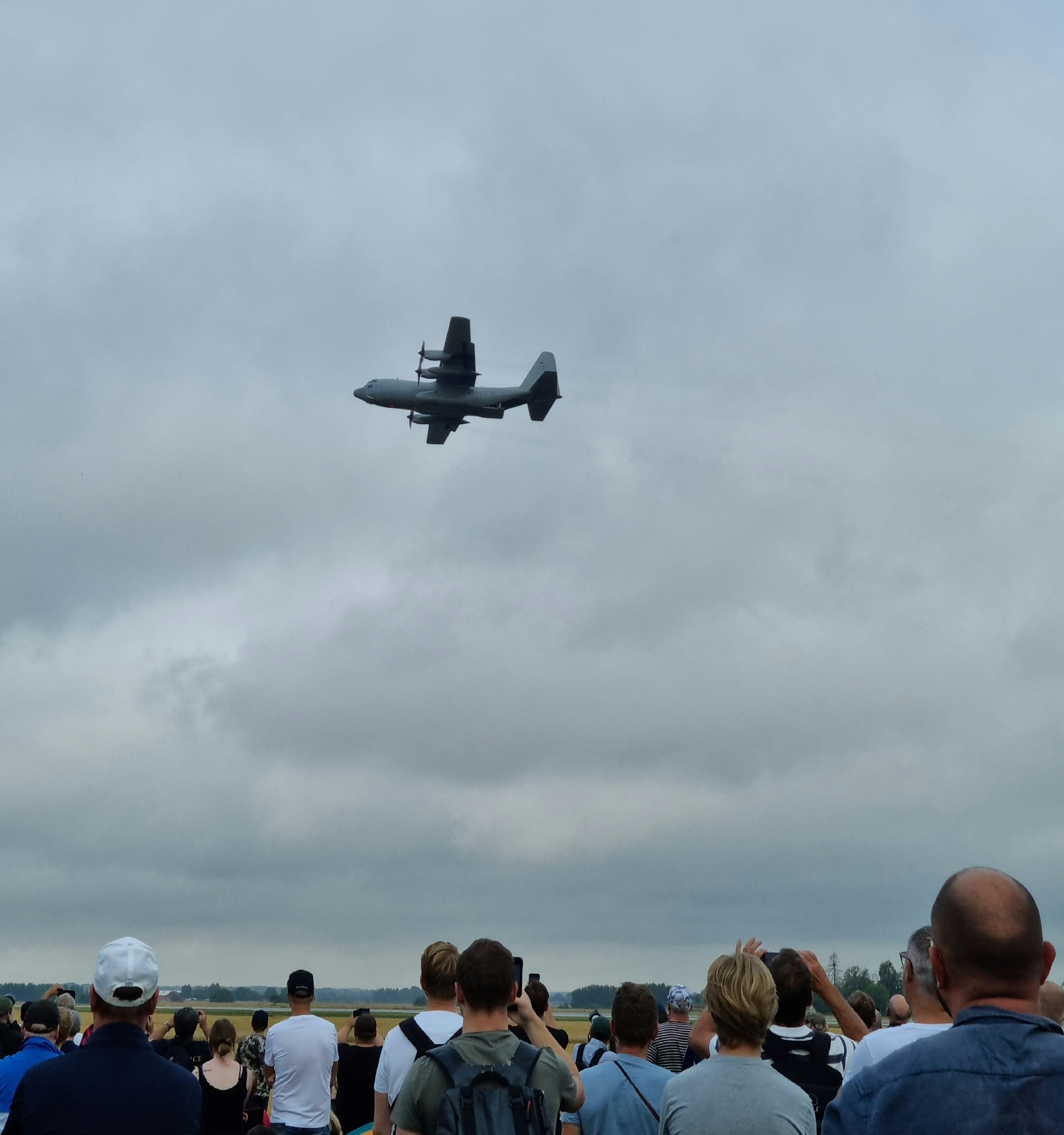 För fyra år sedan var vi här och tyckte då det var en toppendag. Därför tvekade vi inte att ställa in lillens ridpass och stiga upp kl 6 för att komma iväg i tid. Och tur var väl det, redan vid 7.30 var det två km kö på motorvägen till Uppsala och sen lika långt till själva parkeringen (värre blev det under dagen) Så vi tyckte att vi kom fram ganska fort när vi stog på flygområdet strax innan 9 när de drog igång första av dagens två flyguppvisningar. Pga låga moln flög de sina lågflygprogram, och det är ganska mäktig känsla när de dundrar förbi i otroliga farter och konstrar sig. Sen mitt på dagen hade de ett stridsscenario där de släppte fallskärmsjägare från ett Herkules ovan molnen, två JAS kom inflygande lågt för att "bomba" fiendenålet, två Blackhawkhelikoptrar kom in lågt och sköt kulspruta medan de släppte av fler soldater som sedan sprang till "målet" och krigade mot "fienden" så det smattrade gott. Ja lite cool känsla. Vi började här bli olidligt hungriga men köerna till matställena var typ 200 meter långa (jag skojar inte) så det blev ingen snabbmat kan man konstatera. Vi kände att vi lätt skulle kunna betala 300spänn för en hamburgare när vi väl kom fram, döende av hunger och trötta i benen (enda vilan man fick var att sitta på huk/rakt på lerigt gräs) men tro på fan, när vi beställde två burgare var så ba' Det är gratis just nu kortbetalningarna ligger nere. Så vi mumsade vår gratismat med andakt, tack försvarsmakten.